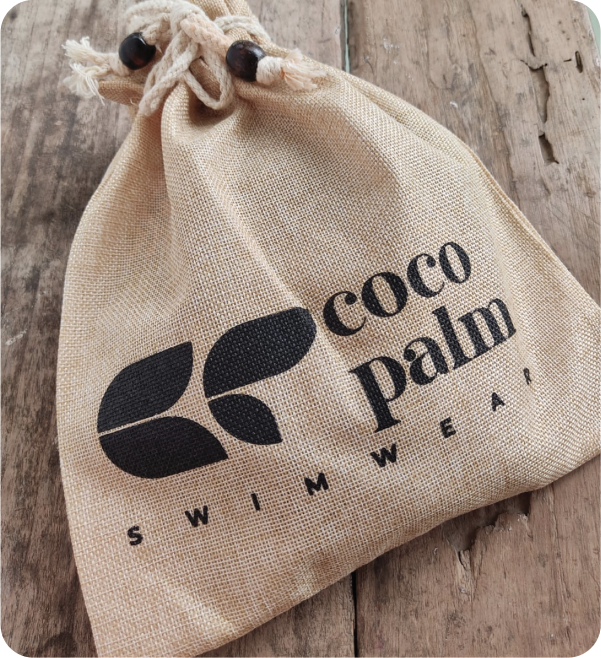 It is important to us that every element of Cocopalm swimwear is as sustainable as possible. As a result, our hang tags and packaging are made from recyclable paper. Our mailing bags are 100% biodegradable, compostable and reusable. Our product packaging is using small jute pouches and we are simply omitting any additional use of any kind of additional wrapping on our products.