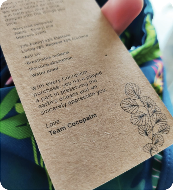 At Cocopalm we are committed to contributing to the solution as best as we can and have tried to make our product as sustainable and ethical as possible. The small details matter to us, as we hope they matter to you. Here is what we are doing to make a difference and contributing to responsible fashion