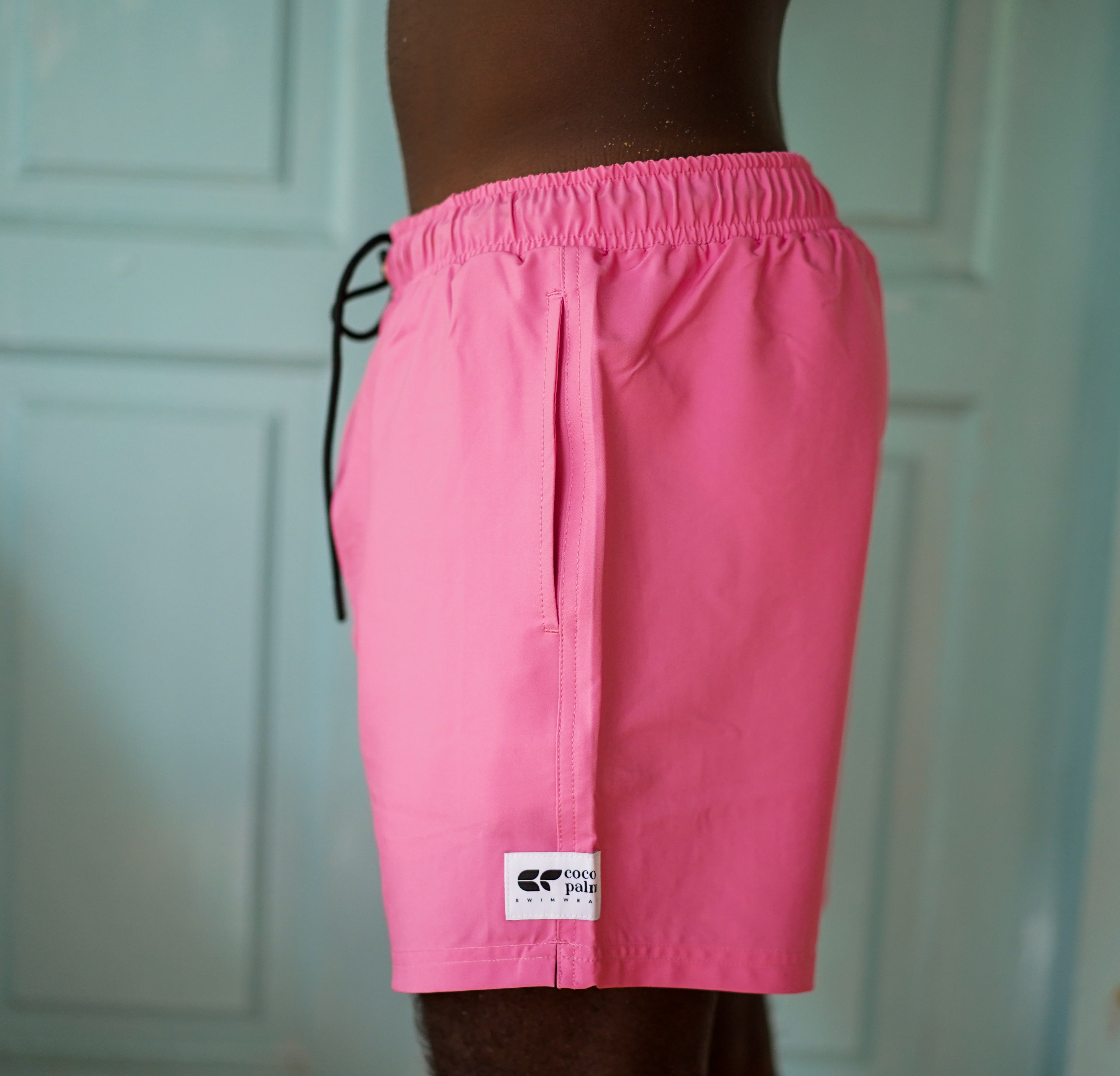 Our all day Pastel Pink snug style swim shorts are the classic 1950's Italian-Riviera styling that inspires our Mens Swim Shorts. These rather snug swim shorts lengthen your legs and show off your quads, and the elastic waistband is a comfortable fit whilst flattering your mid-section, creating a relaxed 50's-style silhouette.