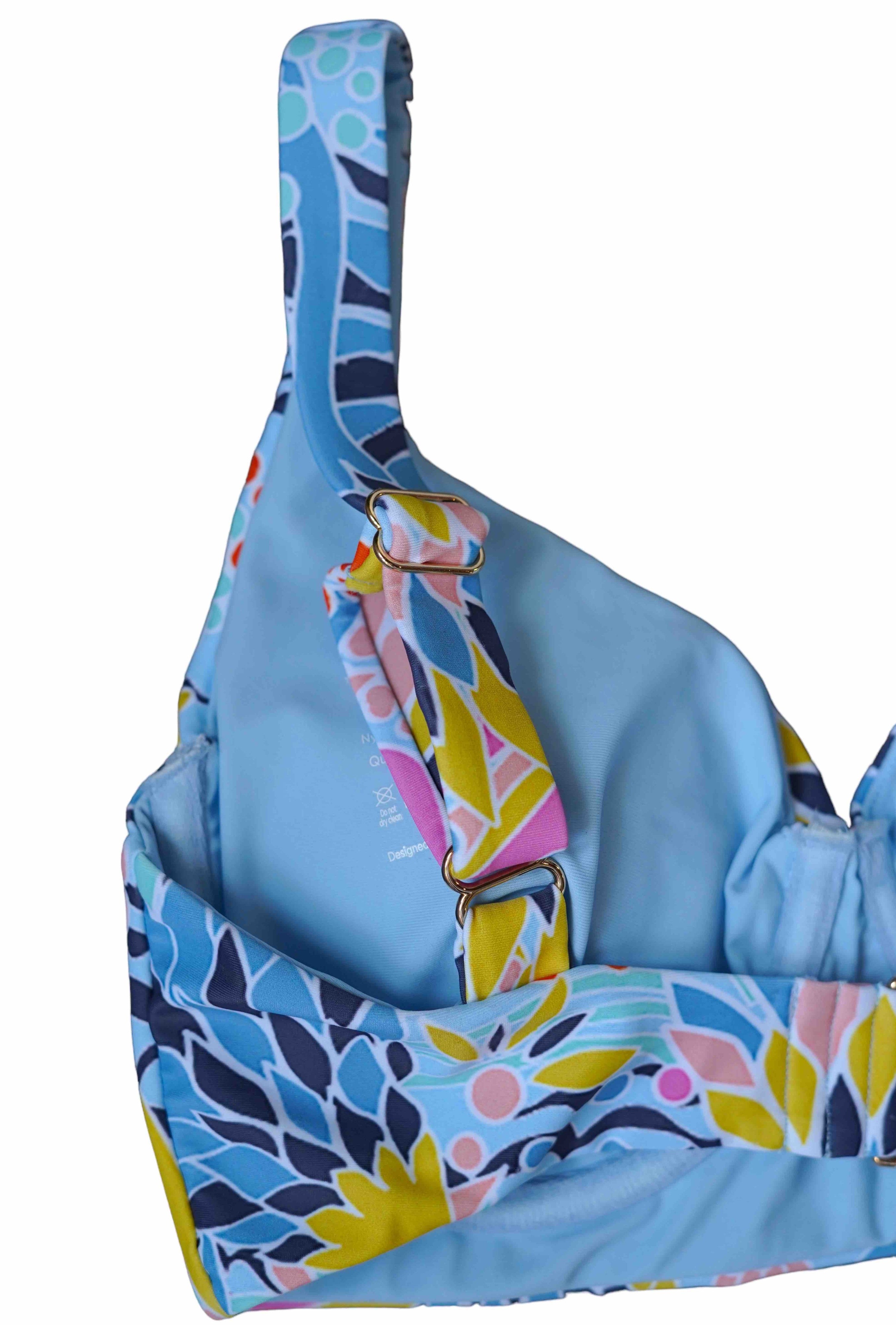 Our Reef print bikini is features our signature vintage bikini style on premium Econyl Nylon that is so soft that you can wear it in and out of the water. This print is inspired by by coral reefs that are so magnificently colourful..