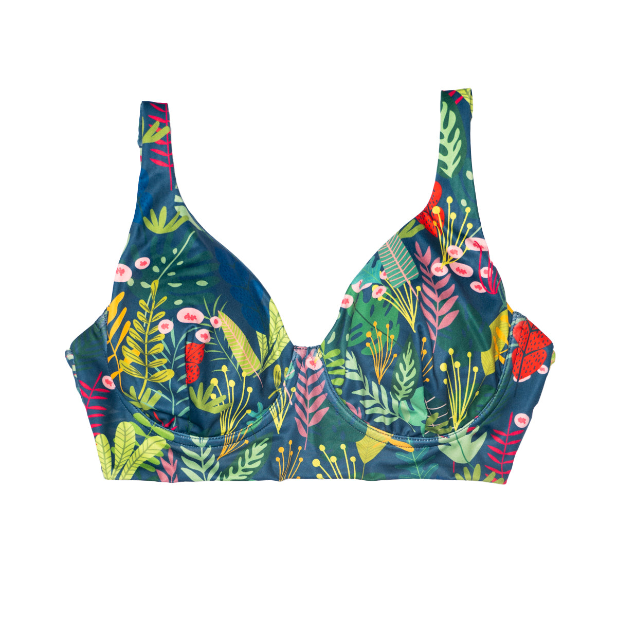 This fabulous bikini is designed using inspirations from the 1940s with thick straps and high waist bottoms. It features our signature vintage jungle pattern printed on premium Econyl Nylon that is so soft that you can wear it in and out of the water.